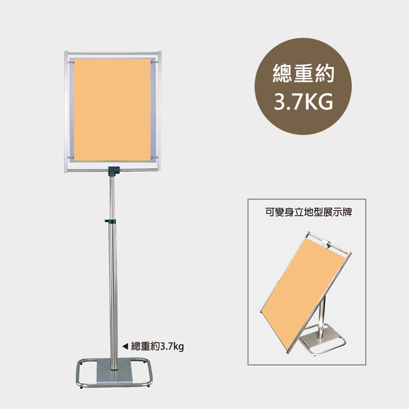顏色:銀 支桿直徑:ø31.8/ø50.8mm 底座直徑:395 x 395mm 可視面尺寸:L595 x W495mm 高度:850-1970mm