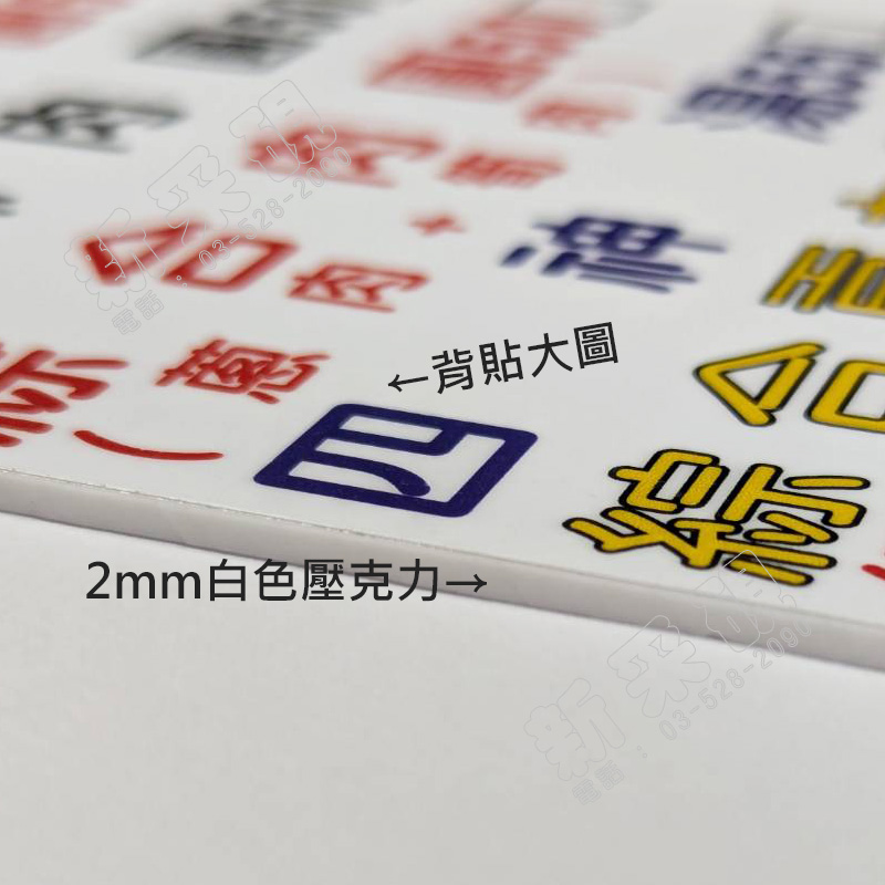 2mm白色壓克力+pvc背膠貼紙+挖洞 壓克力可客製化造型及尺寸,應用廣泛 可用來做標示牌,說明用途