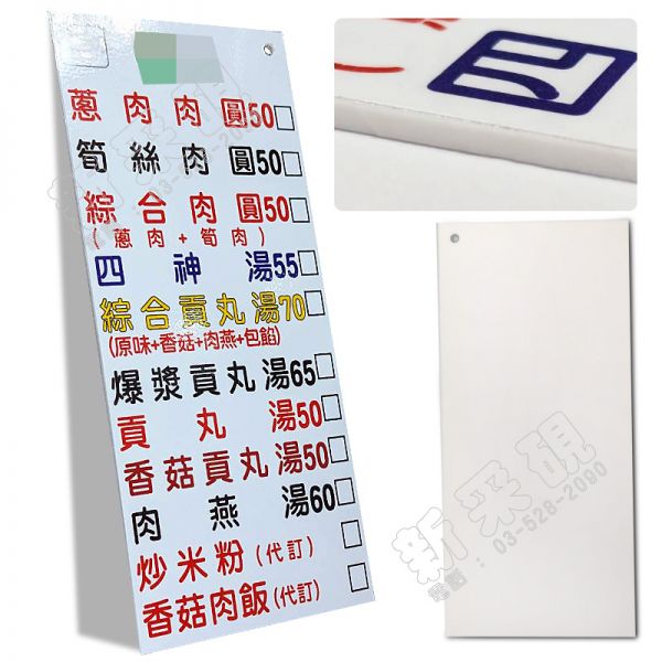 材質:3mm白色壓克力+大圖貼紙 客製化壓克力,應用廣泛,可用來做標示牌,說明用途 也可以用來做展非架,陳列商品