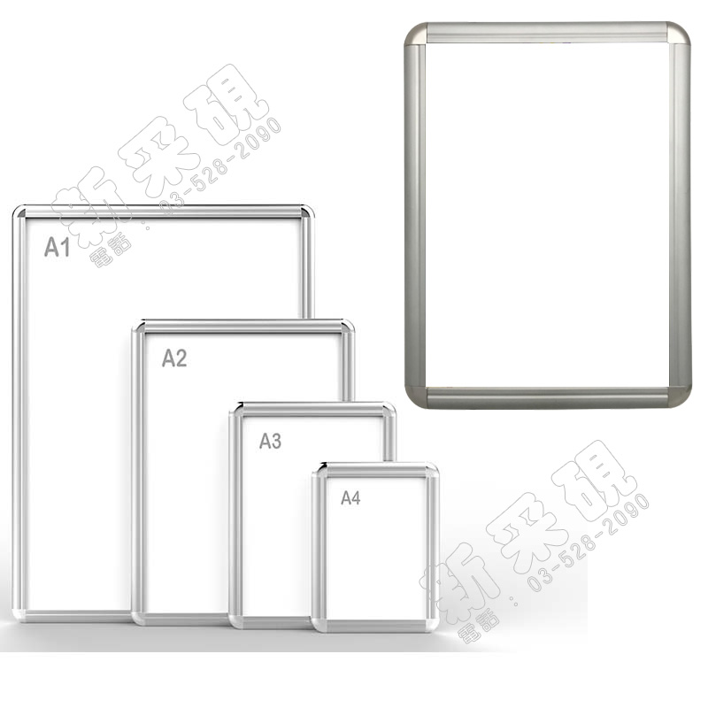 可視面: W288 x L411mm 海報尺寸: A3 W297 x L420mm 整體尺寸: W348 x L471 x D16mm 材質:鋁合金 陽極處理