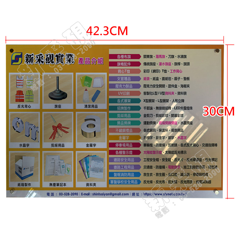 42.3X30CM 透明壓克力底板(前高後底)+四角加強力磁鐵
